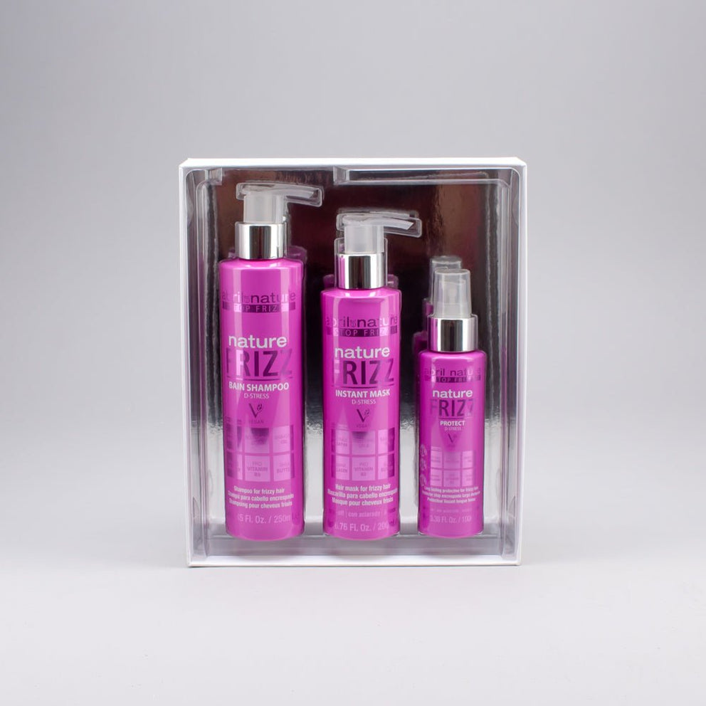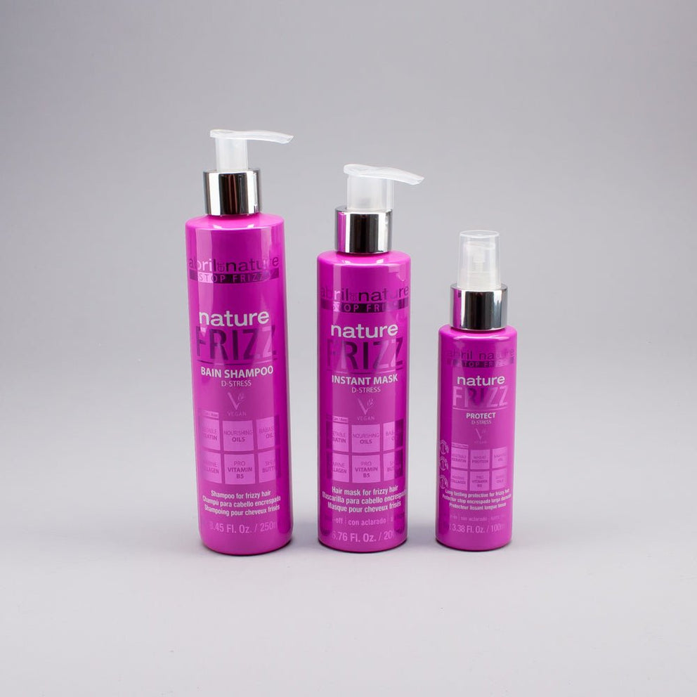 Le traitement Nature Frizz d'abril et nature est spécialement conçu pour éliminer les frisottis et les maintenir sous contrôle jusqu'à 30 jours. Il contient des principes actifs réparateurs et hydratants qui redonnent beauté et souplesse aux cheveux abîmés. Il apporte également nutrition, force et résistance aux cheveux en maintenant les cheveux droits, doux et brillants pendant une période prolongée. Il est indiqué pour les cheveux secs et pour les cheveux ayant une forte tendance aux frisottis. L'ensemble comprend : Shampoing Nature Frizz 250ml Masque Nature Frizz 200ml Nature Frizz Protect 100ml