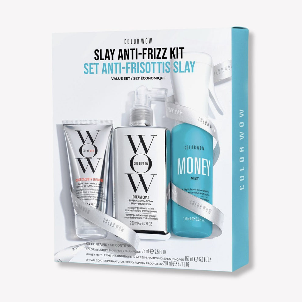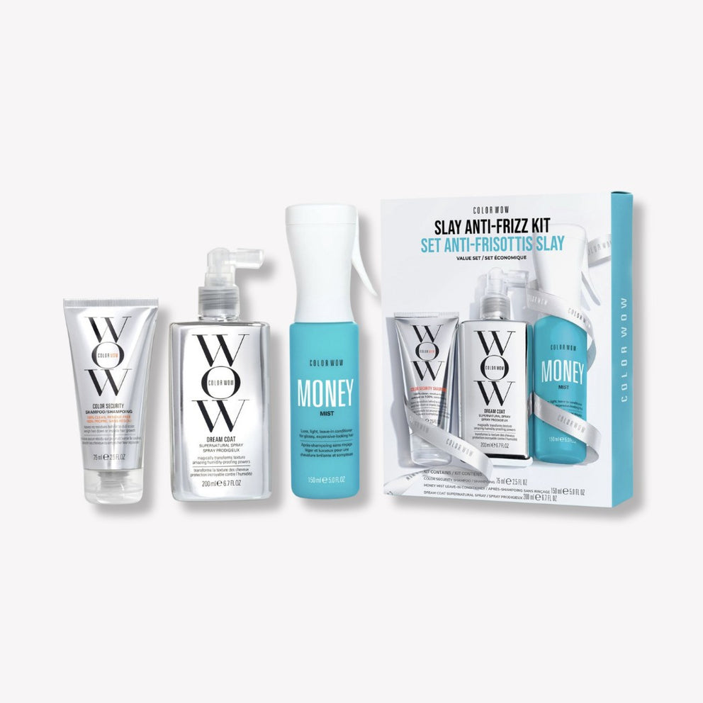 L'ensemble anti-frisottis Color Wow Slay est une solution longue durée en trois étapes pour obtenir des cheveux lisses, brillants et sans frisottis. Il commence par un nettoyage en douceur, nourrit et renforce les mèches, puis hydrate et démêle avant de sceller le tout dans une finition lisse et brillante. Même dans des conditions d'humidité élevée, cette routine permet de conserver une coiffure fraîche, soignée et impeccable pendant plusieurs jours.