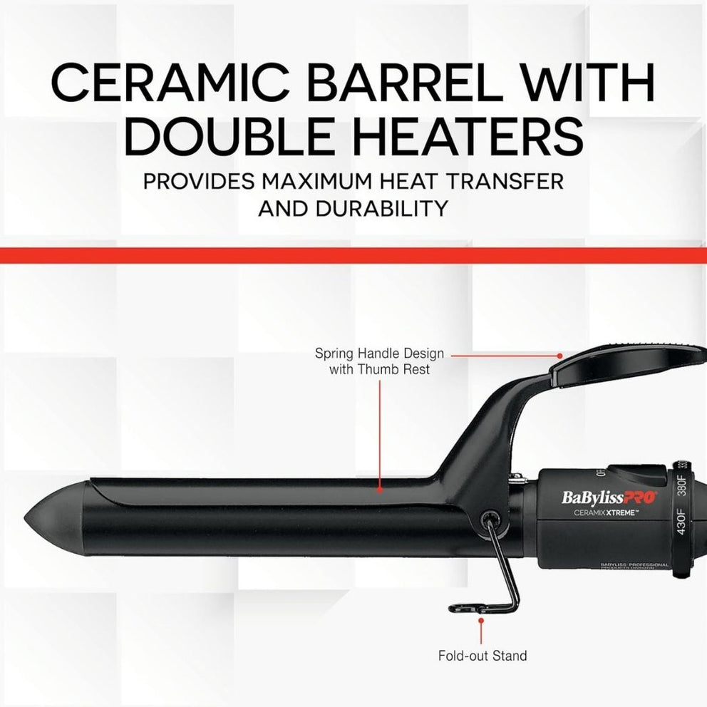 Fer à friser extra-long en céramique 1 po. Tube extra long de 8 po, parfait pour friser les cheveux longs ! Les fers à friser en céramique BaBylissPRO® répartissent la chaleur uniformément, éliminant ainsi les points chauds dommageables. La céramique dégage une chaleur à infrarouge lointain et émet des ions négatifs, ce qui réduit l’électricité statique et le temps de coiffage. Disponible en 1 po et 1-1/4 po. Technologie en céramique Se réchauffe jusqu’à 430 ºF (221 ºC) 3 éléments chauffants pour un excellent rendement thermique Poignée striée pour une bonne prise Support intégré et embout isolant Cordon pivotant de 9 pi (2.7 m) Bitension BABC100XLSC