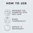 Masser les cheveux mouillés pour activer la mousse abondante, puis rincer abondamment. Répéter l'opération si nécessaire.