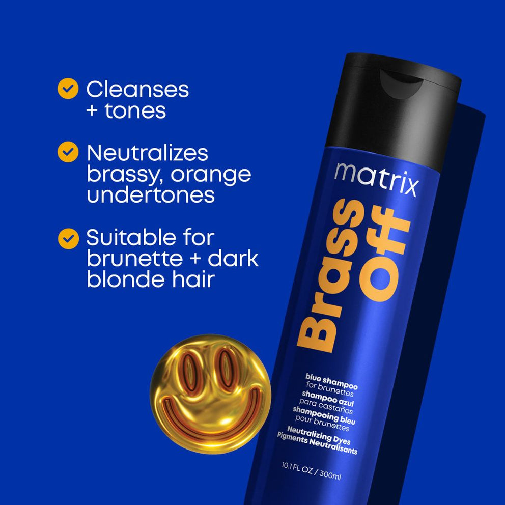 Utilisez le duo Brass Off pour neutraliser les nuances cuivrées tout en rafraîchissant les cheveux grâce à des tonalités froides. Idéal pour les brunes qui éclaircissent leurs cheveux, le shampoing et le revitalisant déposent des pigments bleus-violets équilibrants afin de réduire les nuances cuivrées. L'ensemble contient: 1x shampoing Brass Off 300 ml 1 x revitalisant Brass Off 300 ml