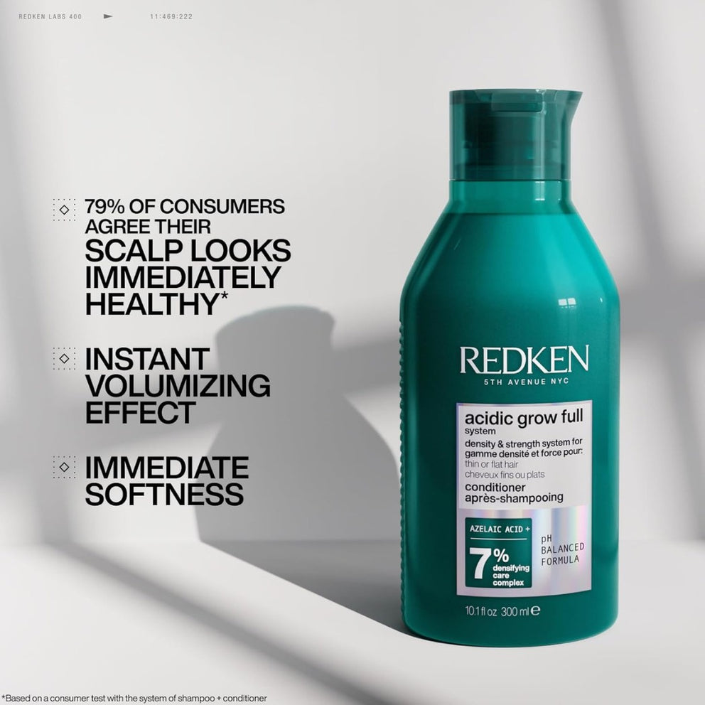 Le revitalisant densifiant Redken Acidic Grow Full System hydrate et nourrit en douceur les cheveux fins et plats tout en rééquilibrant le cuir chevelu. Sa formule légère, enrichie en acide azélaïque, caféine et prébiotiques, renforce la fibre capillaire, réduit la casse et améliore la résistance des cheveux. Dès l’application, les cheveux paraissent plus épais, plus volumineux et revitalisés, même sur cheveux colorés.