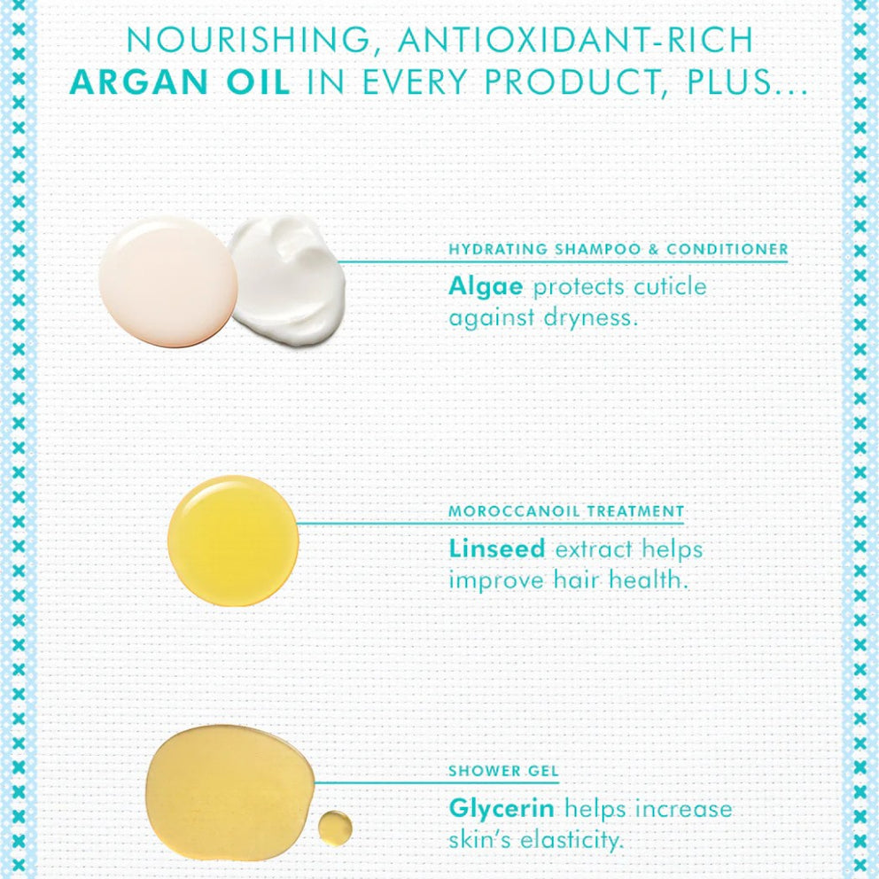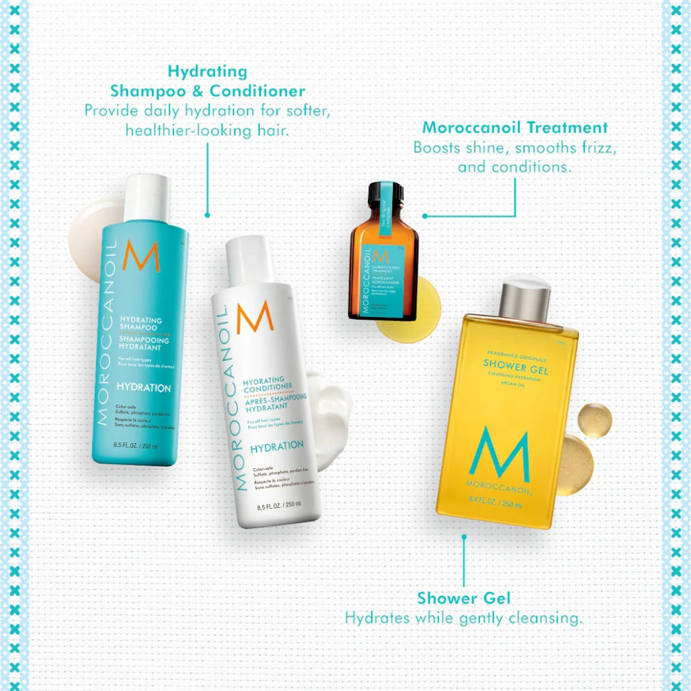 Offrez-vous des cheveux soyeux et éclatants de santé grâce au coffret cadeau Holiday Hydration Hair à l'huile d'argan. Cette collection en édition limitée hydrate en profondeur, lisse et nourrit de la tête aux pieds, laissant les cheveux doux, brillants et faciles à coiffer tout en revitalisant la peau. Magnifiquement présenté dans une trousse de toilette offerte, il comprend un gel douche grand format gratuit pour une expérience de soin complète. Cet ensemble contient : 1 x Shampoing Hydration 250 ml 1 x Revitalisant Hydration 250 ml 1 x Traitement 25 ml 1 x Gel de douche 250 ml