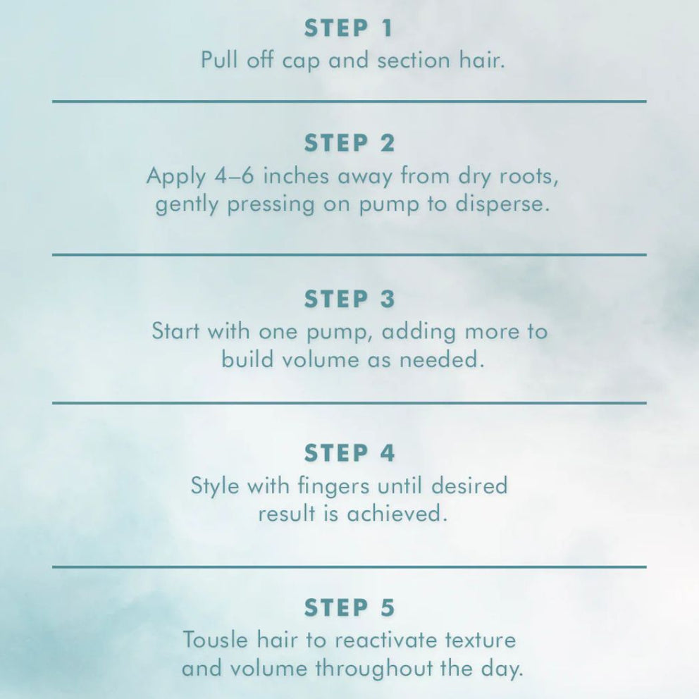 Appliquer à la racine des cheveux secs, puis coiffer avec les doigts jusqu’à obtention du résultat souhaité.