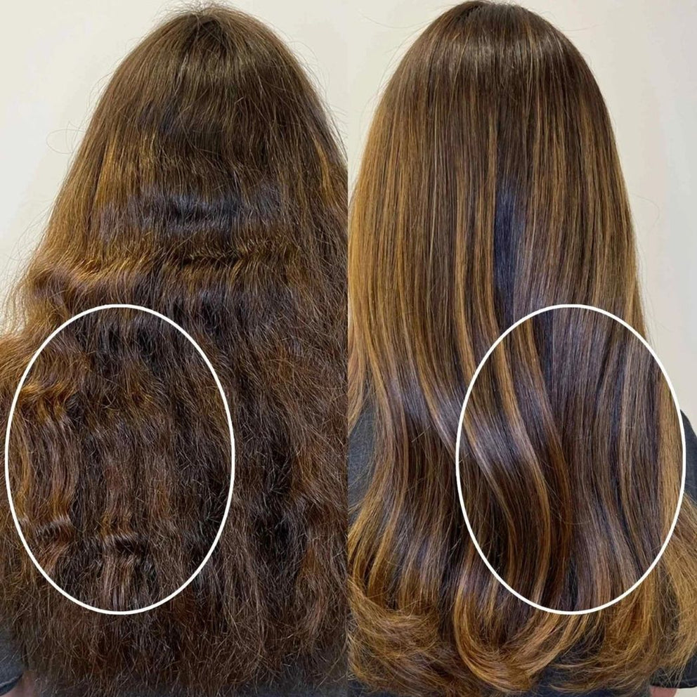 L'huile Healing Oil Bond Smoothing Styler lisse les mèches tout en reconstruisant les liens brisés. Il rétablit l'hydratation pour un démêlage facile et une brillance éclatante.