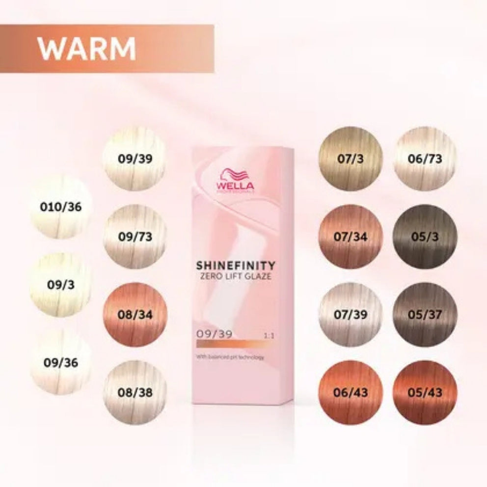 Shinefinity by Wella is a semi-permanent color without ammonia, silicone or alcohol, which respects your hair while adding natural shine. Ideal for neutralizing unwanted tones, evening out color or adding shine after lightening. Modular, gentle and reliable, it offers up to 6 weeks of maintenance-free hold.