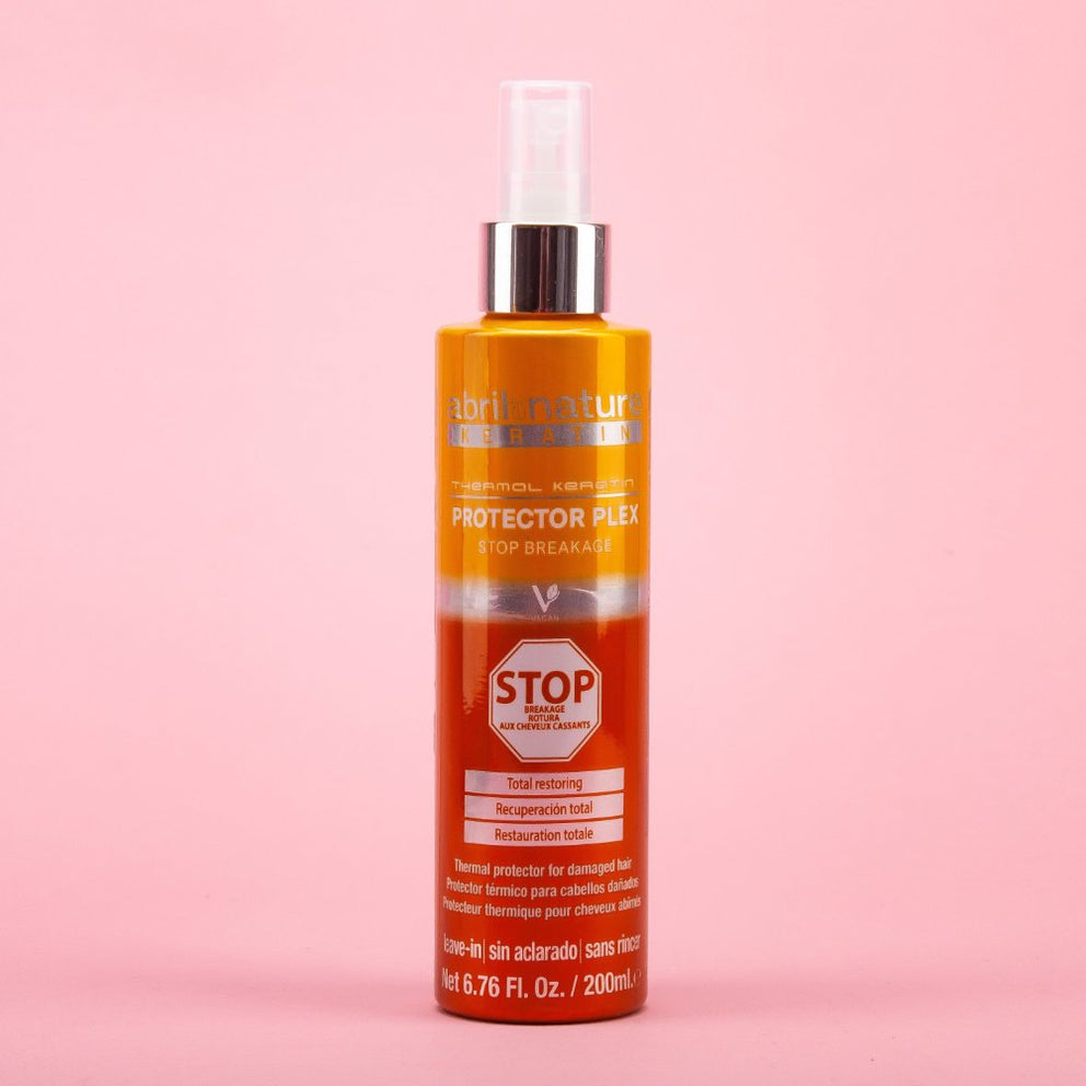 Abril et Nature's Keratin Plex thermal protector is an essential product for extremely damaged hair prone to breakage. It has been specially designed to protect and revitalize the hair fiber, while preserving its health and resistance to the daily heat of styling tools. Its formula, rich in Cystine Bond Complex, an exclusive active ingredient, helps to deeply repair hair by reconnecting broken bonds within the hair fiber. This spray provides intensive care, facilitating detangling and styling while controlling frizz. Thanks to ingredients such as creatine, plant-derived keratin, hyaluronic acid and hydrolyzed wheat proteins, it strengthens hair's internal structure and restores its natural moisture, leaving it soft and shiny. By incorporating it into your routine, you can guarantee your hair optimum protection and nutrition, while preserving its shine and vitality.