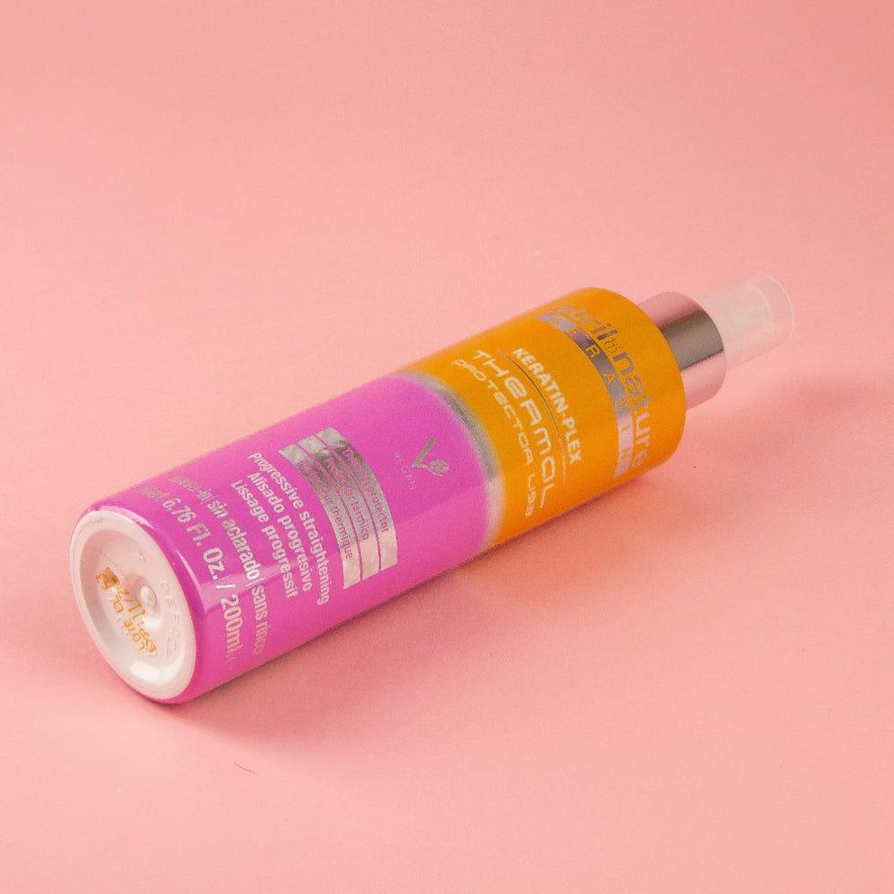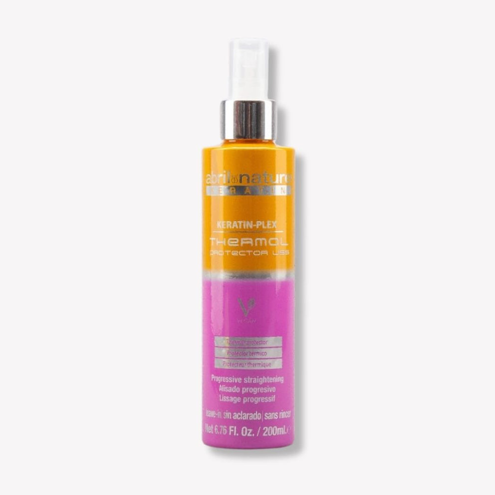 Abril et Nature Keratin Plex Smoothing Thermal Protector is a leave-in spray offering complete thermal protection and a progressive smoothing effect. It's ideal for frizz-prone hair and for those looking for long-lasting smoothness. This product protects the hair fiber from heat damage caused by straightening irons and other styling tools, while strengthening the hair shaft to prevent breakage. Thanks to its Cystine Bond Complex, it repairs hair's internal bonds and restores it deep down. Enriched with plant keratin and hydrolyzed wheat proteins, it smoothes hair gradually, leaving it soft, shiny and protected against heat, while providing intense conditioning and visible repair.