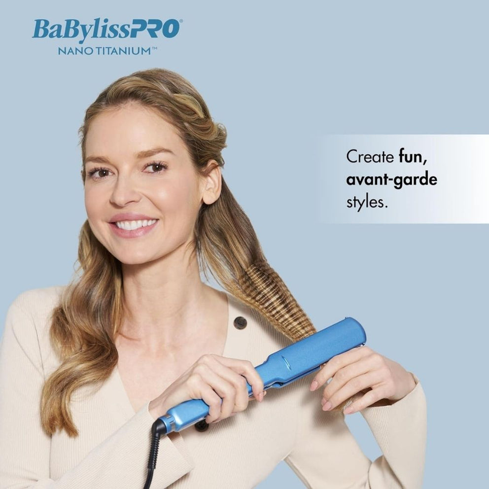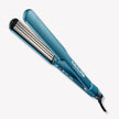 This crimper offers exceptional performance with its heat- and corrosion-resistant titanium plates. Its ceramic heating element instantly heats up to 450°F (232°C). The elongated 5” plates allow fast styling, and the embossing plates add texture. The slim profile and Ryton® housing ensure easy handling. It is dual-voltage and includes a thermal finger guard.