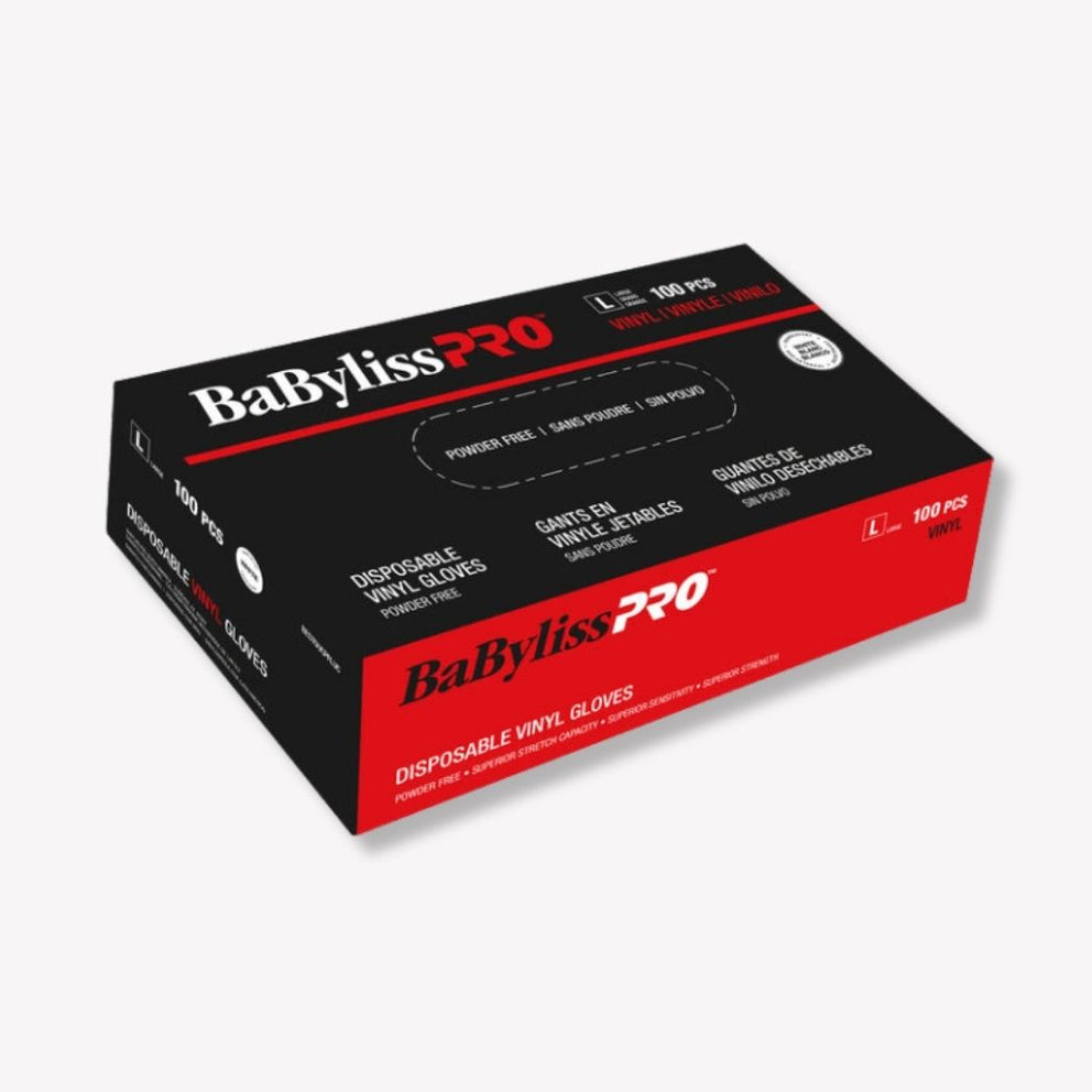 BaBylissPRO® disposable white vinyl gloves offer superior elasticity, while the lightweight material provides a high level of sensitivity. Powder-free and with rolled cuffs, these ambidextrous gloves are ideal for hair coloring. Box of 100 units, size Large.