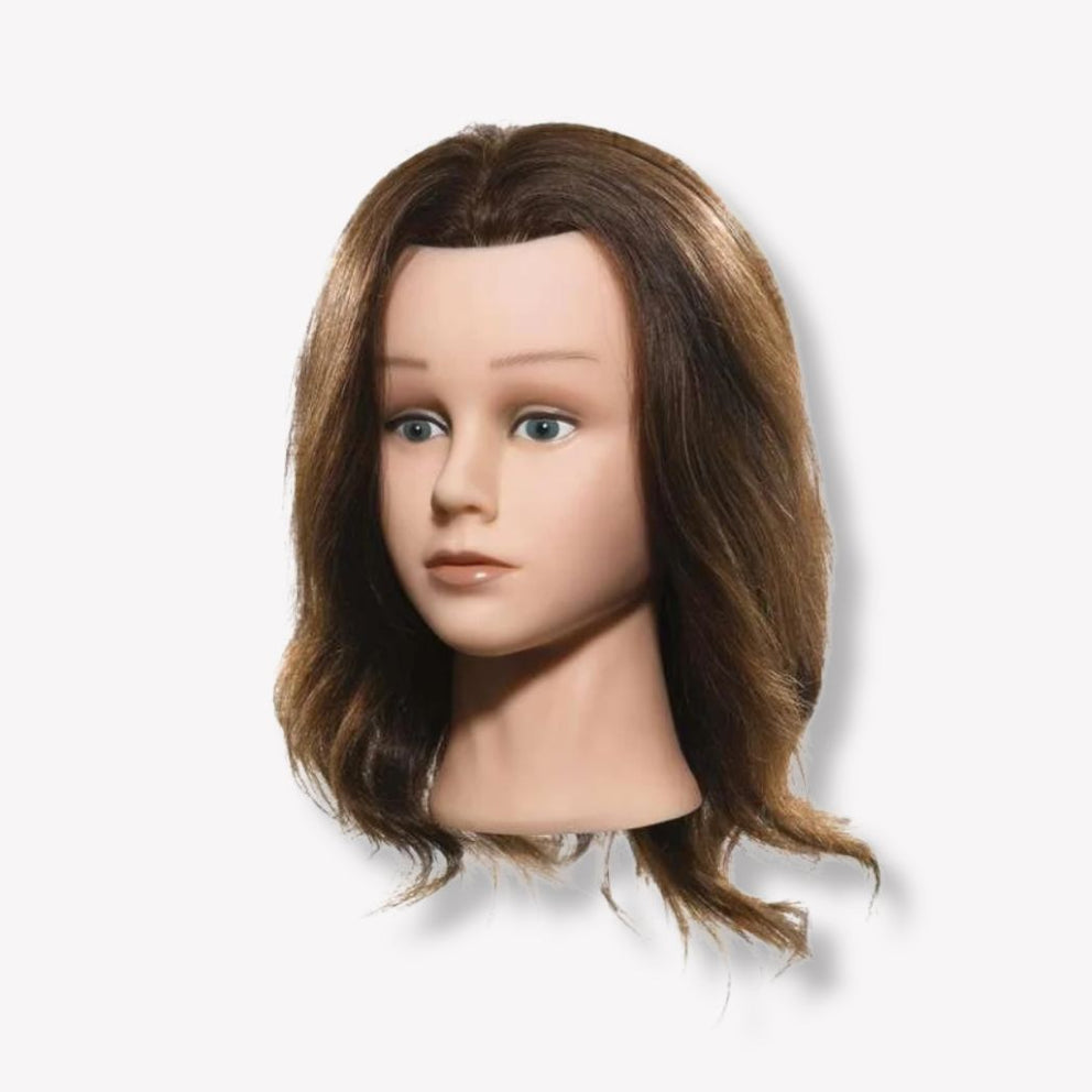 Standard hairstyle with brown hair, backwards placement, medium density and 100% natural hair.