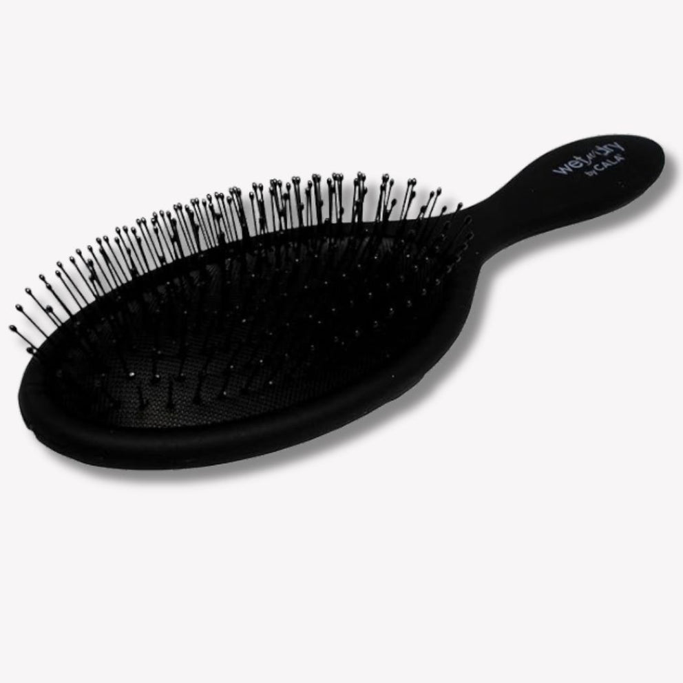 The Wet-N-Dry Hairbrush is ideal for all hair types, wet or dry. This brush adds shine and smoothes hair while gently massaging and stimulating the scalp. The soft, flexible bristles are perfect for detangling hair with less snagging and breakage. The oval shape and soft polymer handle make the brush easy to hold, allowing for effortless styling.