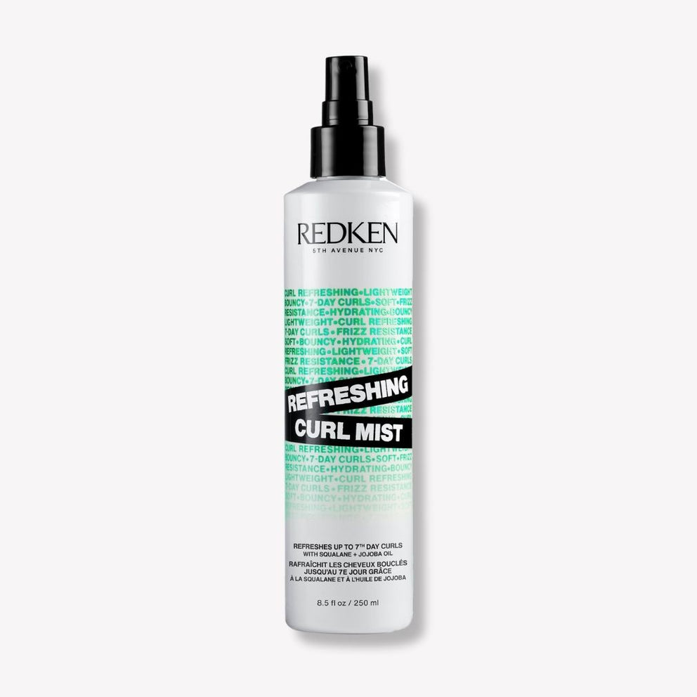 Redken's Refreshing Curl Mist is a lightweight, leave-in spray that revitalizes, hydrates, and redefines curls for up to 7 days after washing. Thanks to its blend of humectants and low-retention polymers, it refreshes without weighing hair down, reduces frizz by 76%* and restores curls' bounce, shape and natural shine.