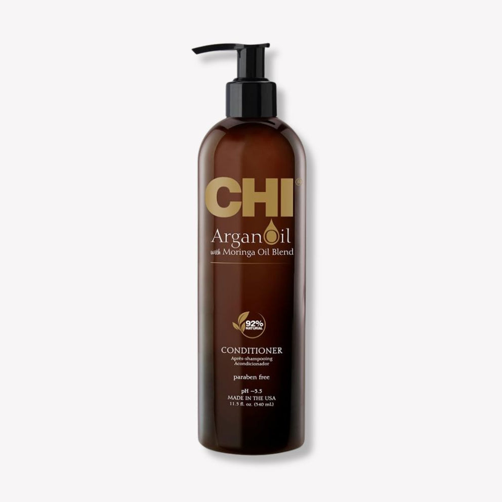 After shampooing apply to damp hair and work evenly from mid hair to ends. Rinse with cool water. Use with CHI Argan Oil Shampoo.