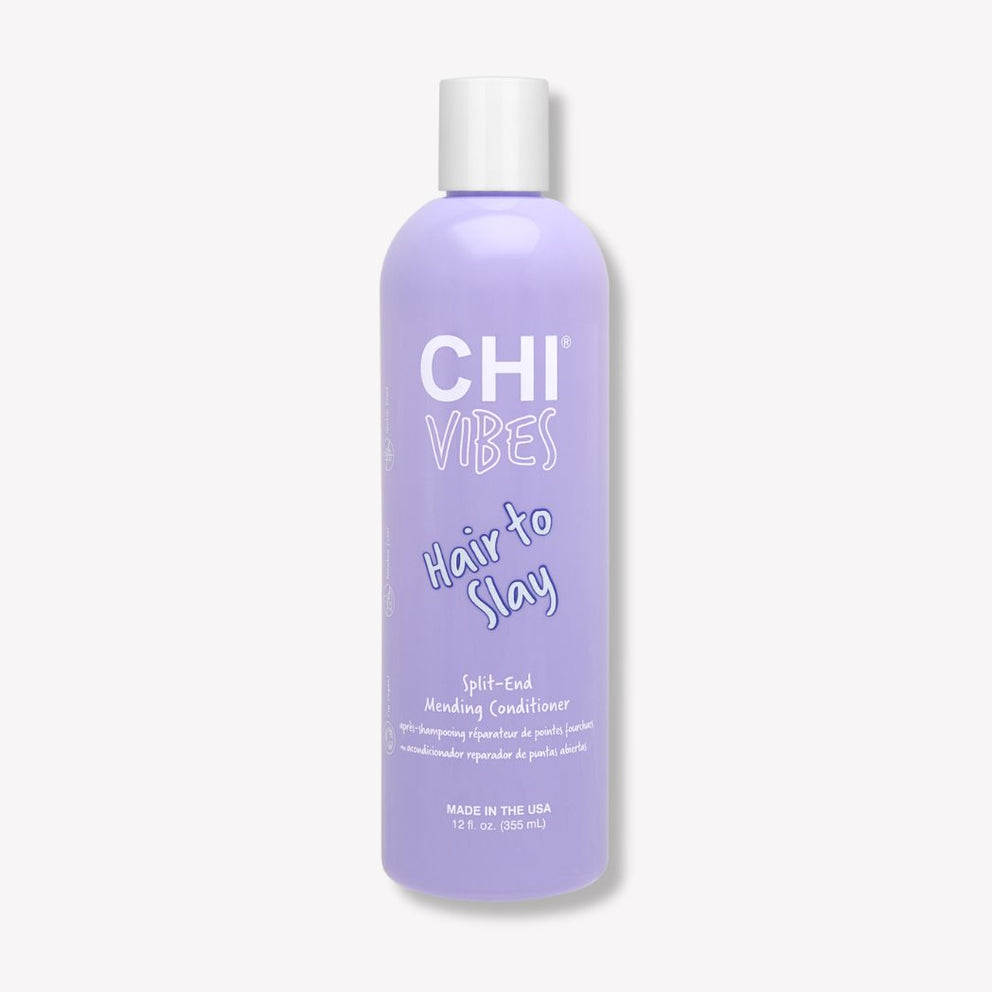 Vibes Hair to Slay Repair Conditioner includes repairing binders for split ends to help repair damage caused by heat, fading, color and daily brushing.