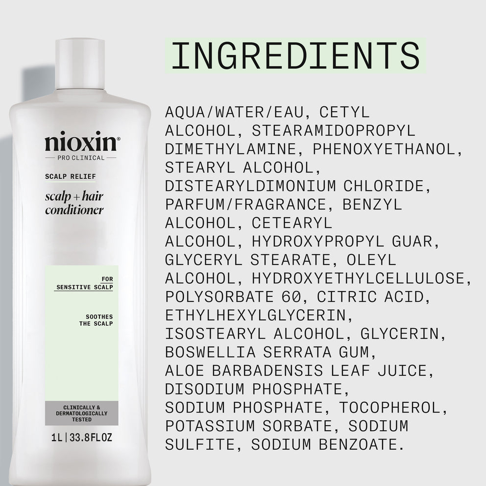 Nioxin Scalp Relief Conditioner is formulated to instantly soothe sensitive, irritated and moisture-starved scalps. Featuring ingredients such as aloe vera, niacinamide, and Soothex™ complex, this conditioner effectively treats the scalp while providing a densifying effect on hair. It thus offers a complete solution to promote a healthy scalp, soothe discomfort, moisturize hair, and potentially improve hair density.