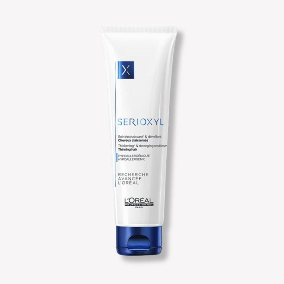 Thickening and detangling conditioner for thinning hair. With its hypoallergenic formula, suitable for sensitive scalps, this conditioner cares for and detangles the fiber without weighing it down, while thickening the hair's appearance for an immediate densifying effect. It is also color-safe.
