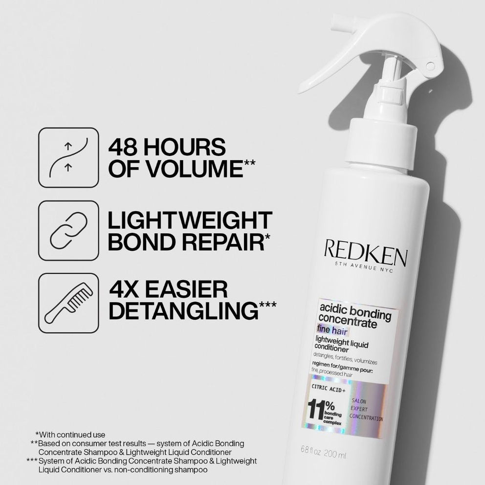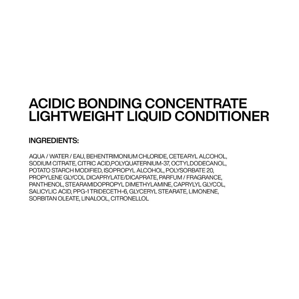 Acidic Bonding Concentrate Liquid Conditioner is an acidic liquid conditioner containing strategic combinations of conditioning agents and binders. Formulated without silicone, this liquid conditioner helps strengthen weak bonds during continuous use, from the inside out, without weighing them down.