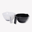 The coloring bowls feature teeth on the rim to remove excess product from your brushes, enabling more precise lines and harmonious blends. Designed to mix, transport and apply color in a single bowl, they are made from impact-resistant material for added durability. With a handy handle for easy transport from coloring counter to chair, these bowls include a non-slip rubber bottom and pouring spout, perfect for toners and treatments, making clean-up easy after each use.