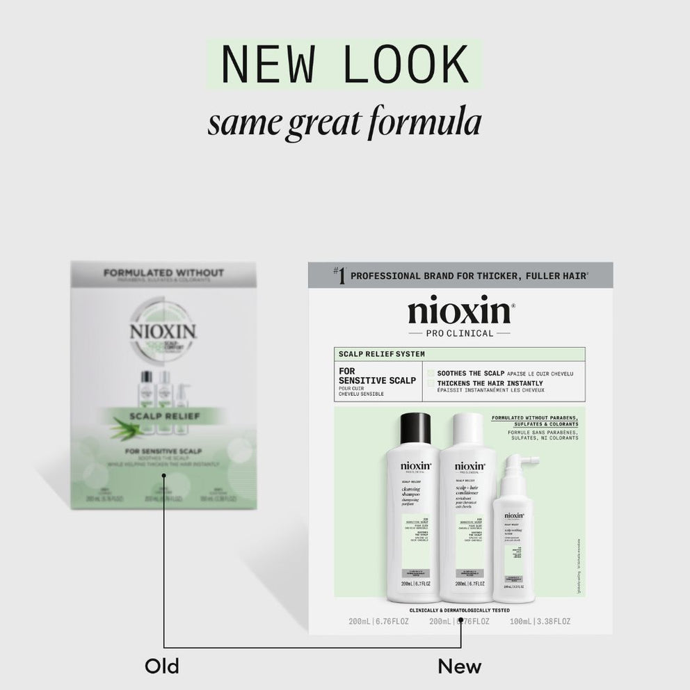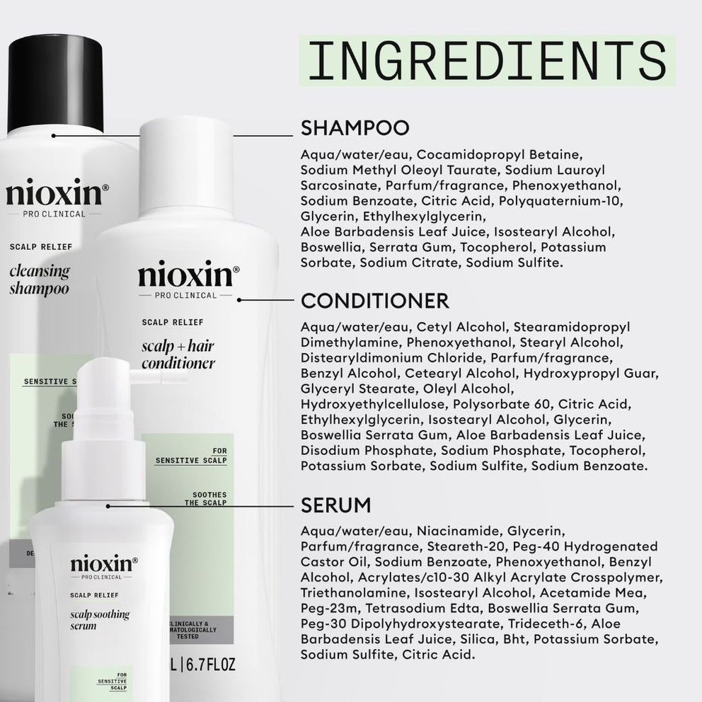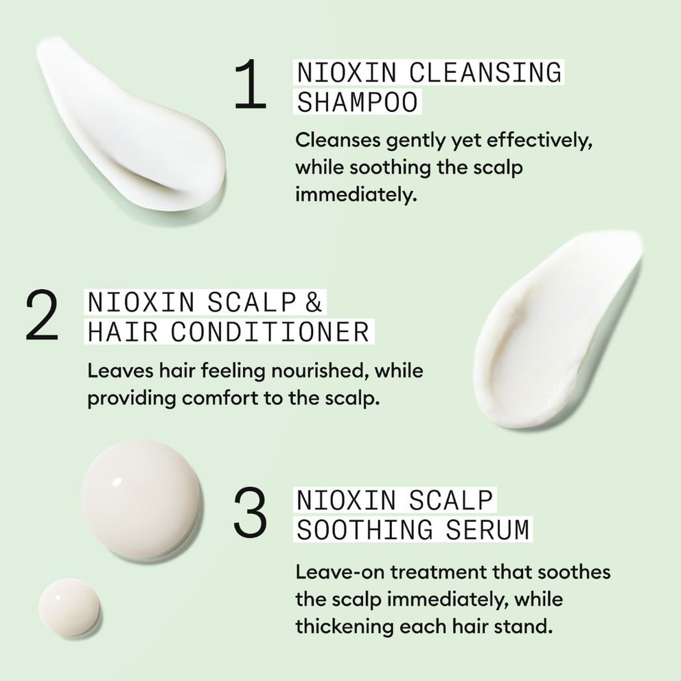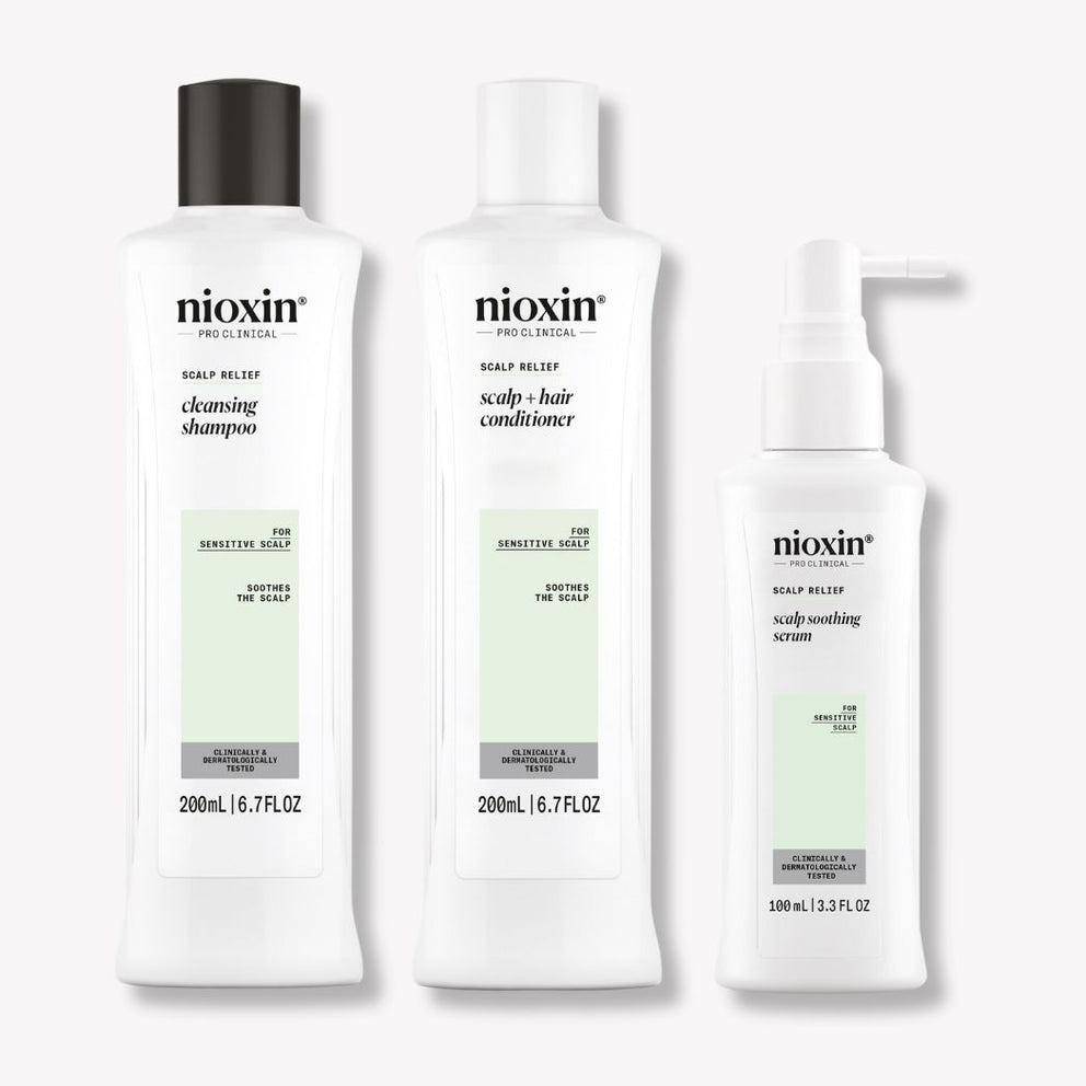 The Nioxin Scalp Relief Kit includes shampoo, conditioner and serum to relieve dry, itchy scalp while thickening your hair from the very first use. It's free from sulfates, parabens and colorants.