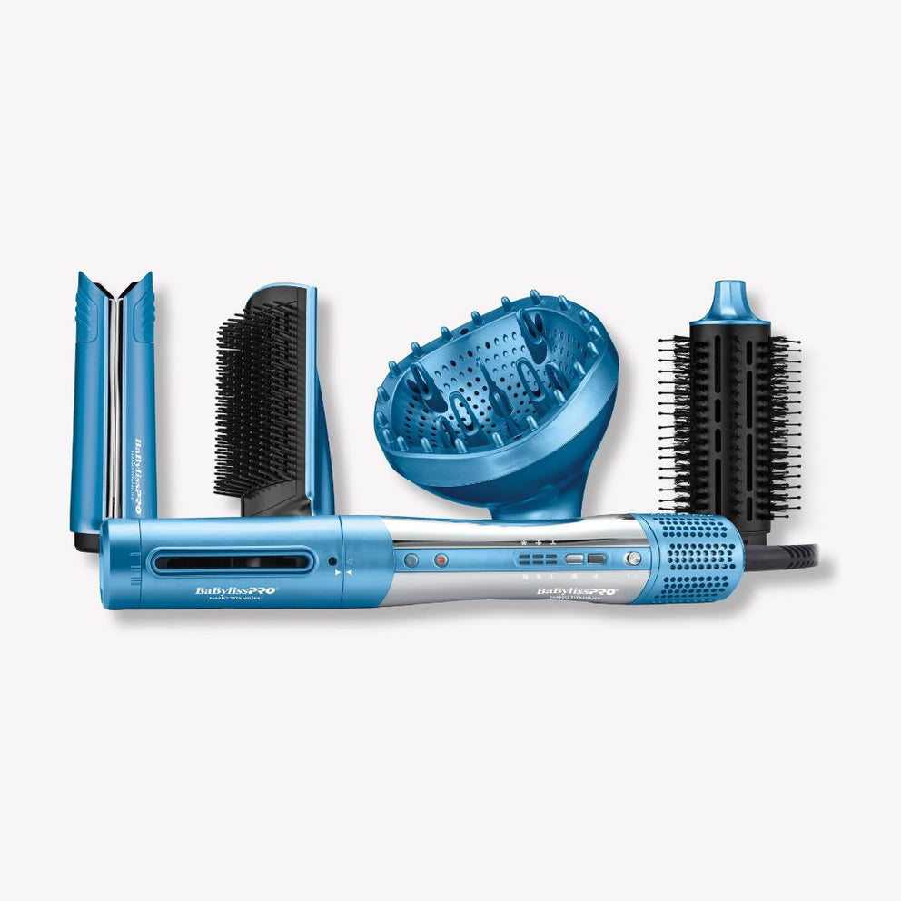 Versatile and innovative, this 5-in-1 heated brush creates smooth, voluminous, curly or wavy styles in the blink of an eye. Thanks to its nano-titanium technology, it ensures rapid heat, even distribution and a glossy, frizz-free finish. Its all-in-one design replaces multiple styling tools for salon results in a single gesture.