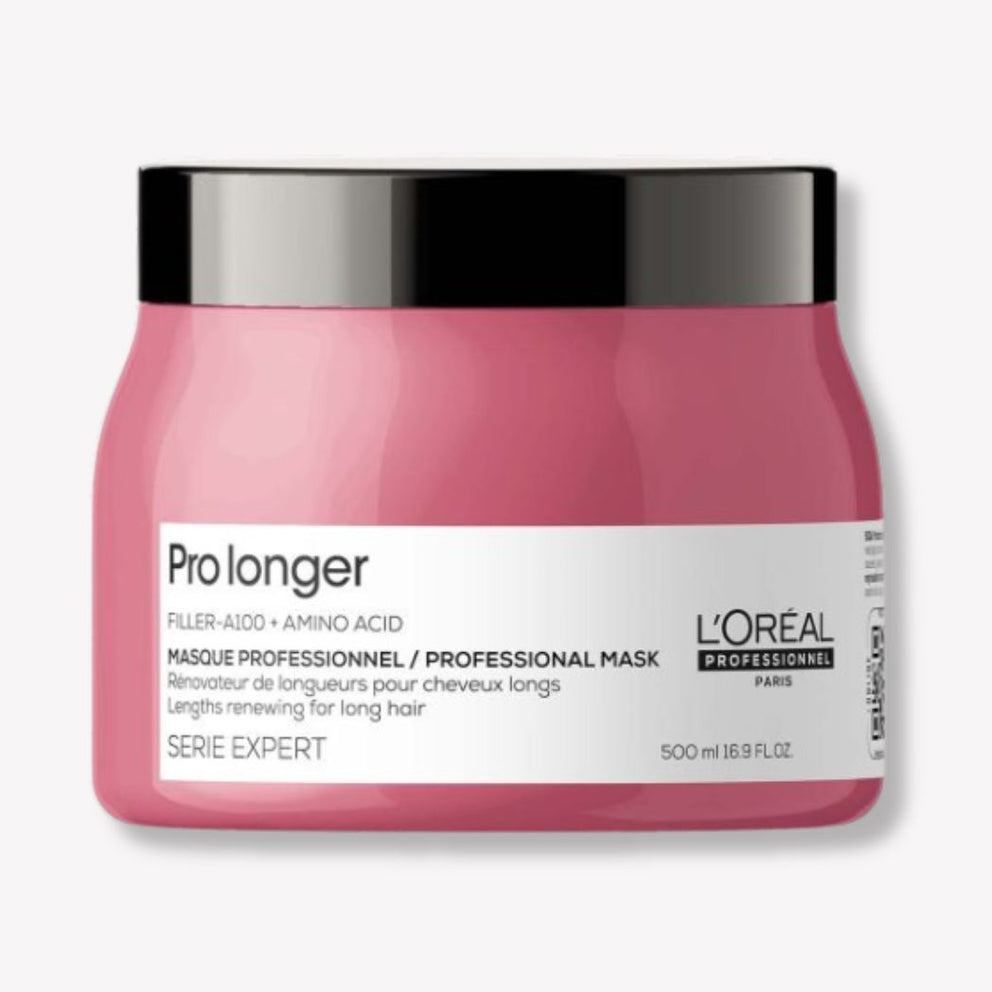 Pro Longer Professional Mask intensely strengthens and revitalizes hair, from roots to ends, for visibly renewed lengths. Enriched with Filler-A100, a patented ingredient exclusive to L'Oréal Professionnel, and amino acids, it thickens and smoothes the hair fiber while filling in thinning ends. Its advanced formula restores vitality and protection to long hair, for stronger, denser, healthier-looking hair.