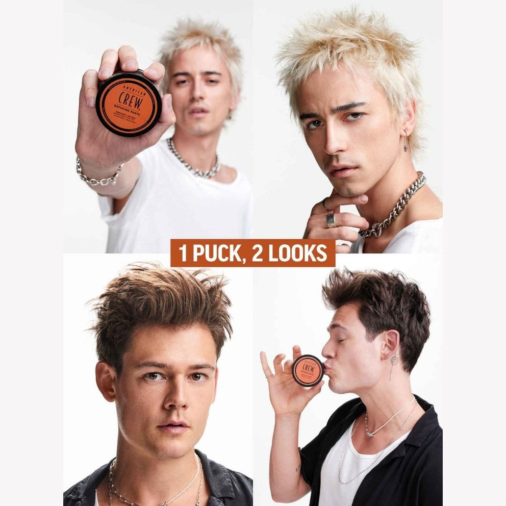 For added texture or increased definition, our styling paste is ideal. Beeswax provides natural, flexible hold for different hair types. Its wax-like consistency ensures a matte finish while remaining easy to distribute throughout the hair. Our styling paste offers similar results to our hair fiber in terms of texture and effect, but is easier to use and distribute throughout the hair. Additionally, it is also suitable for hair exceeding 2 inches in length. Enjoy medium hold with subtle shine with our defining styling paste.