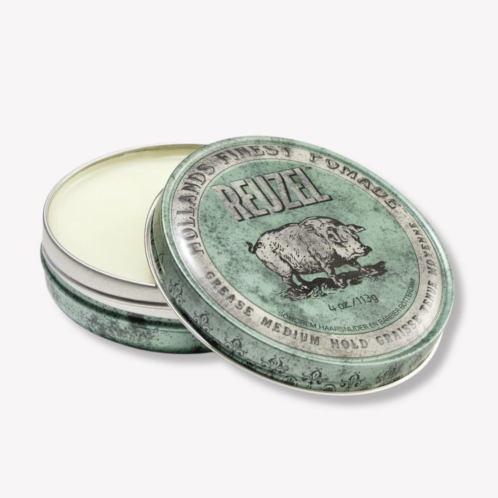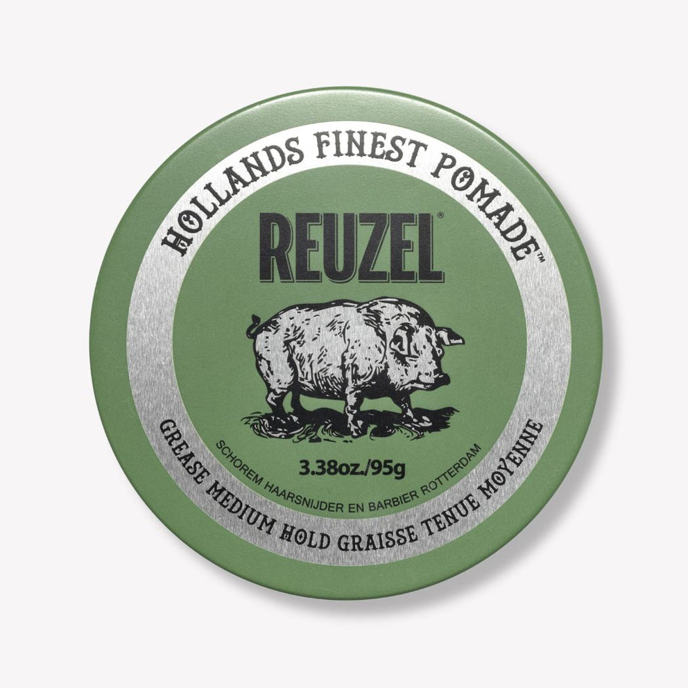 Reuzel's Green Grease pomade, made with beeswax, allows the product to glide through the hair without clumping, while encouraging moisture retention. Compared to other traditional greases, tea tree oil breaks up product build-up, making it easier to remove in the wash.