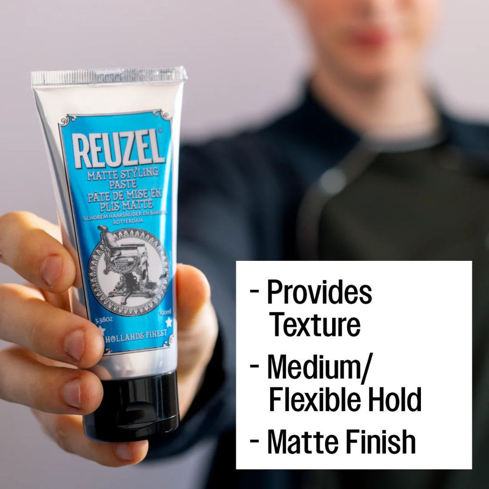 Reuzel's matte styling paste offers medium-soft hold, adding texture and definition for different hair lengths. It leaves a matte finish while being water-soluble for easy rinsing. Enriched with moisturizing oils, it nourishes hair while adding fullness and texture. Its subtle sweet rum fragrance adds a pleasant touch to your hair routine.