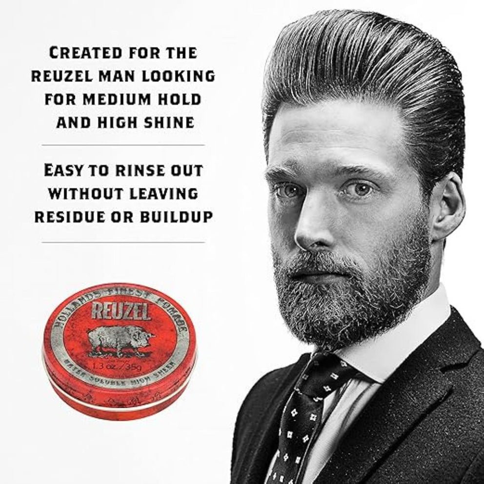 Take one or two dots of product from the can and emulsify between palms. Apply to dry or slightly damp hair, starting at the crown and working towards the front. Work from scalp to ends and coat hair generously. If necessary, apply a little more Red Pomade to dry areas and finish by combing hair into the desired shape.