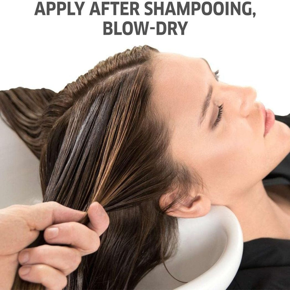 After shampoo, apply evenly to damp hair. Do not rinse out. Blow-dry for maximum effect.