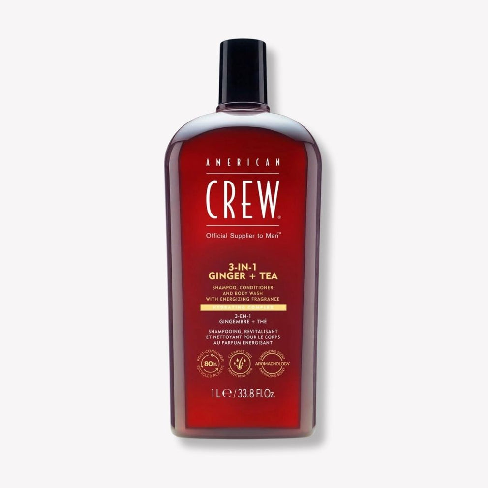 All-in-one shampoo, conditioner, and body wash formulated with energizing Ginger and Tea scent.