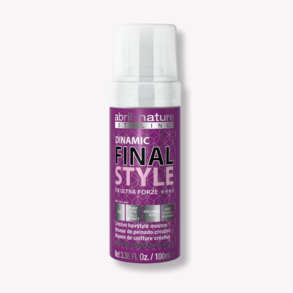 Meet Dinamic Final Style Ultra Strong Mousse by Abril et Nature — a professional styling mousse that combines ultra-strong hold with deep care and protection. Designed for all hair types and styles, it adds body, control, and long-lasting hold without stickiness or residue. Its lightweight texture coats every strand, providing natural volume and flexibility. It prevents frizz, restores elasticity, and delivers a healthy shine. With its memory effect, curls and waves can easily be reshaped by lightly dampening the hair. Result: lasting definition, volume, and shine — even in humid weather.