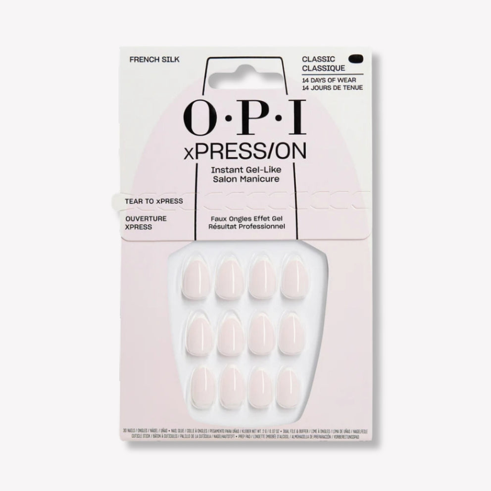 Keep your look clean and fresh with OPI's pressed nails. Create your own personalized look by mixing and matching different colors and patterns. Set includes nail glue, cuticle stick, double nail file and buffer, OPI preparation buffer and 30 nails in different sizes.