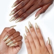 Step 1: Cover your natural nail with each nail prosthesis to find the perfect size, making sure to align the number with the tip of your natural nail. Step 2: Create customized shapes and lengths using the Shape Up side of your file. Step 3: Trim or file your nails if necessary and lightly polish their surfaces. Remove dust and debris with the Prep to xPRESS pad, then gently push back cuticles. Step 4: Remove the glue cap and gently squeeze the bottle. For longer-lasting hold, apply the glue to the back of the nail to be pressed and to the natural nail. For short-term use, apply glue only to the nail to be pressed. To remove: Soak your nails in warm water for 10 minutes and apply a small amount of acetone to the base of the nail using a cotton swab. Then gently lift the nail extensions with your cuticle stick.