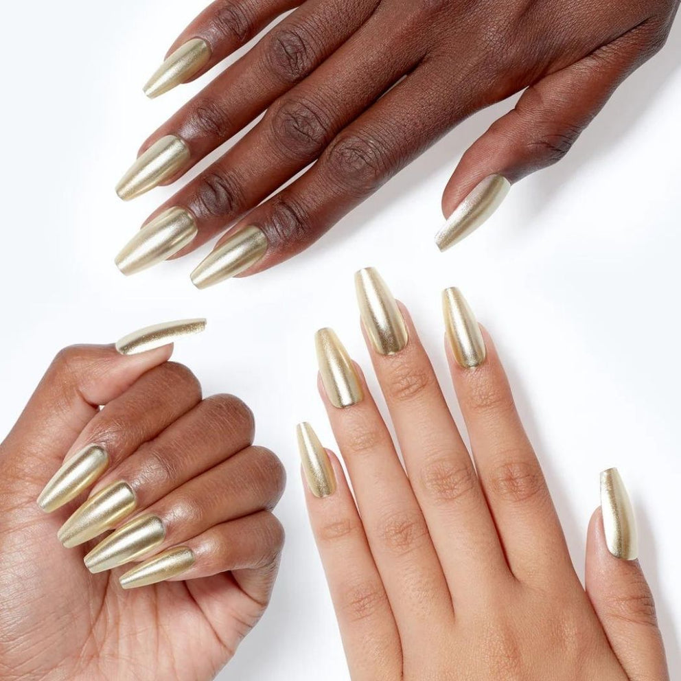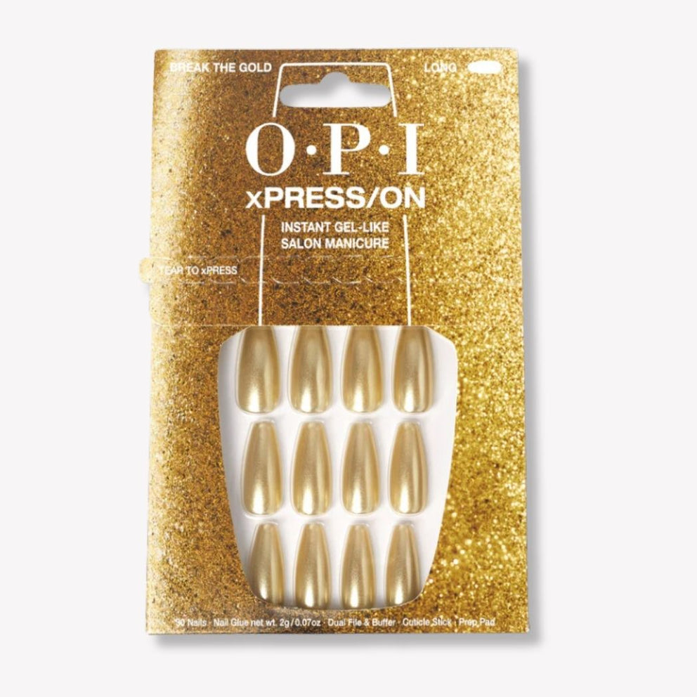 Keep your look clean and fresh with OPI's pressed nails. Create your own personalized look by mixing and matching different colors and patterns. Set includes nail glue, cuticle stick, double nail file and buffer, OPI preparation buffer and 30 nails in different sizes.
