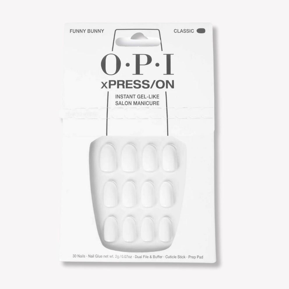 Keep your look clean and fresh with OPI's pressed nails. Create your own personalized look by mixing and matching different colors and patterns. Set includes nail glue, cuticle stick, double nail file and buffer, OPI preparation buffer and 30 nails in different sizes.