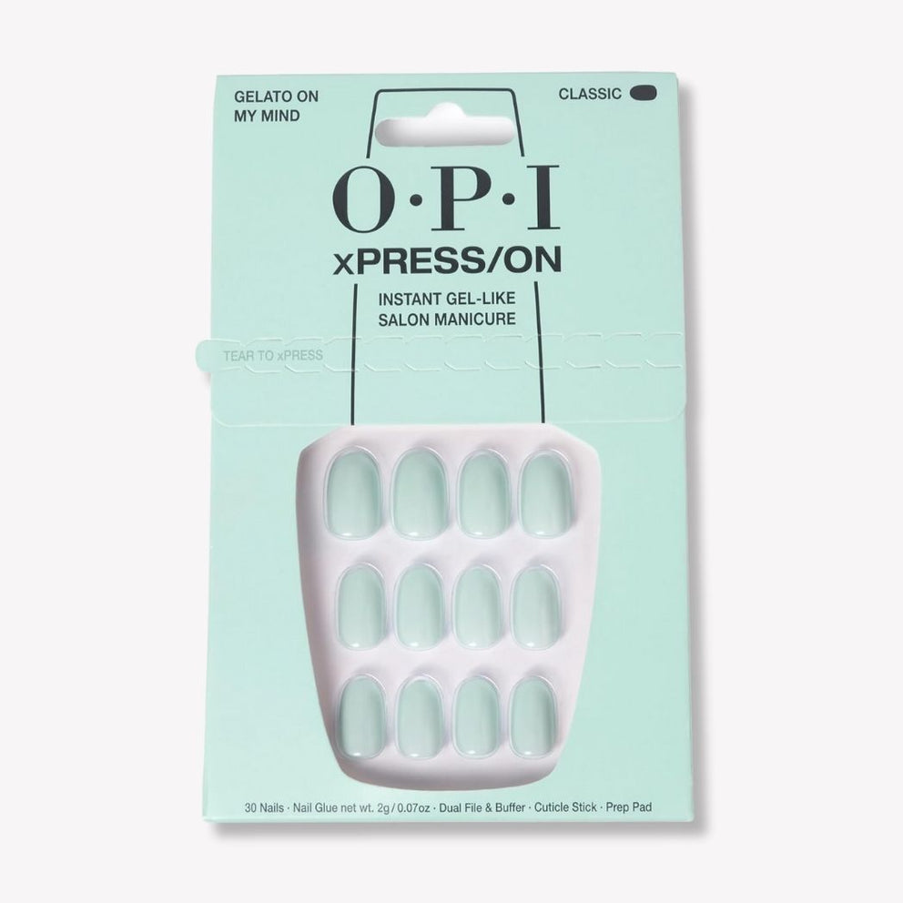 Keep your look clean and fresh with OPI's pressed nails. Create your own personalized look by mixing and matching different colors and patterns. Set includes nail glue, cuticle stick, double nail file and buffer, OPI preparation buffer and 30 nails in different sizes.