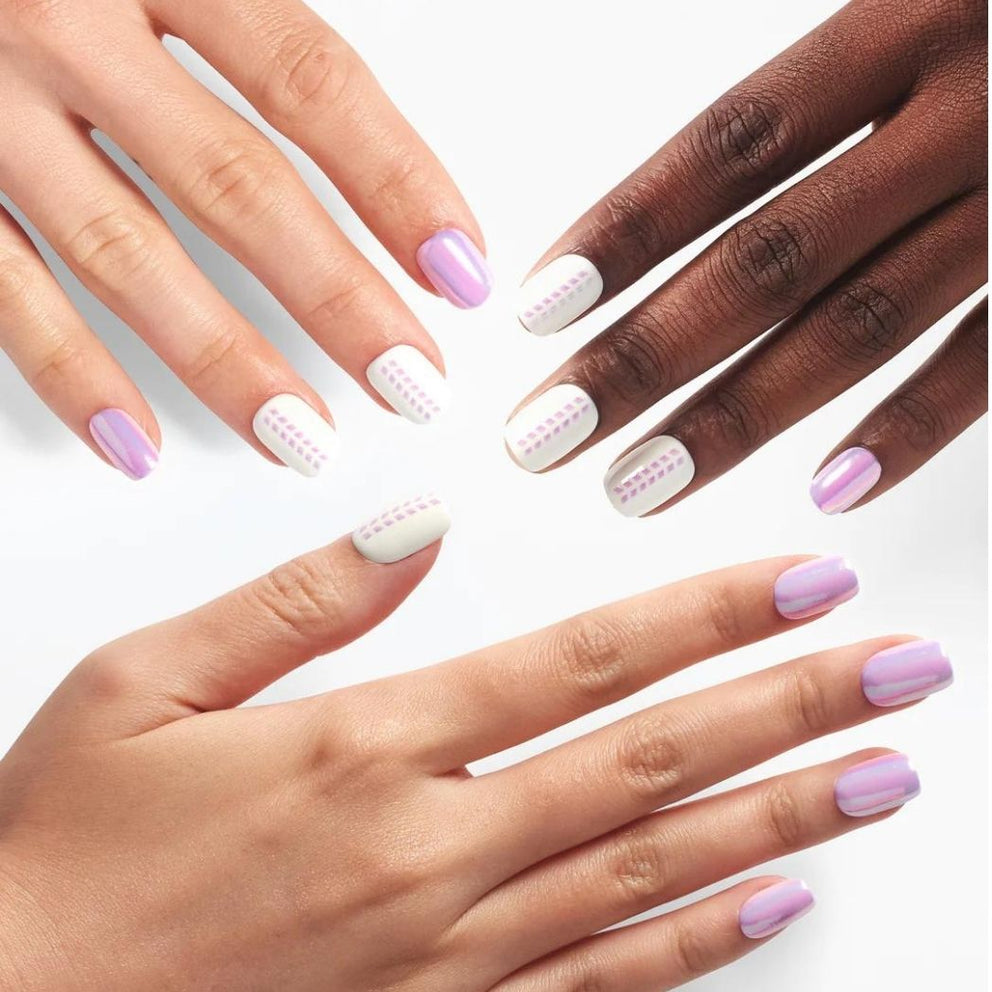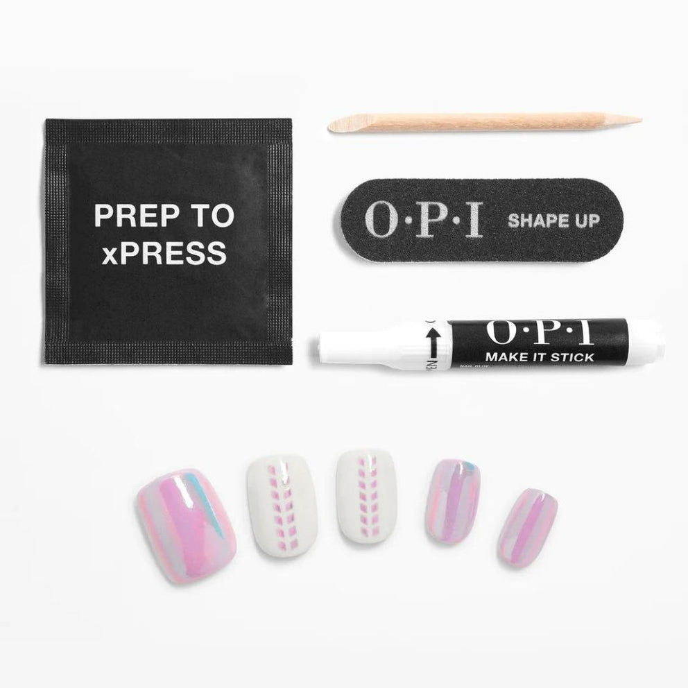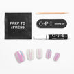 Keep your look clean and fresh with OPI's pressed nails. Create your own personalized look by mixing and matching different colors and patterns. Set includes nail glue, cuticle stick, double nail file and buffer, OPI preparation buffer and 30 nails in different sizes.