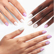 Step 1: Cover your natural nail with each nail prosthesis to find the perfect size, making sure to align the number with the tip of your natural nail. Step 2: Create customized shapes and lengths using the Shape Up side of your file. Step 3: Trim or file your nails if necessary and lightly polish their surfaces. Remove dust and debris with the Prep to xPRESS pad, then gently push back cuticles. Step 4: Remove the glue cap and gently squeeze the bottle. For longer-lasting hold, apply the glue to the back of the nail to be pressed and to the natural nail. For short-term use, apply glue only to the nail to be pressed. To remove: Soak your nails in warm water for 10 minutes and apply a small amount of acetone to the base of the nail using a cotton swab. Then gently lift the nail extensions with your cuticle stick.