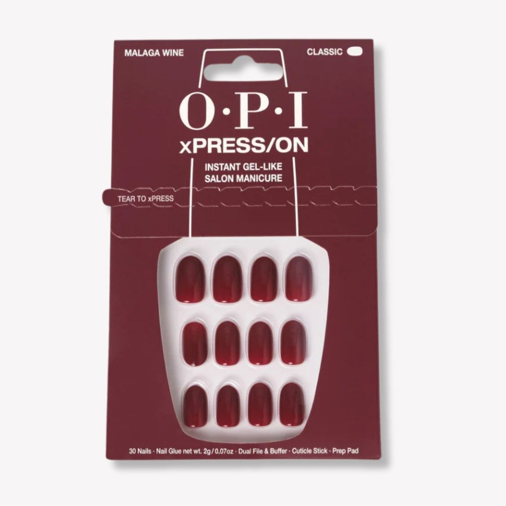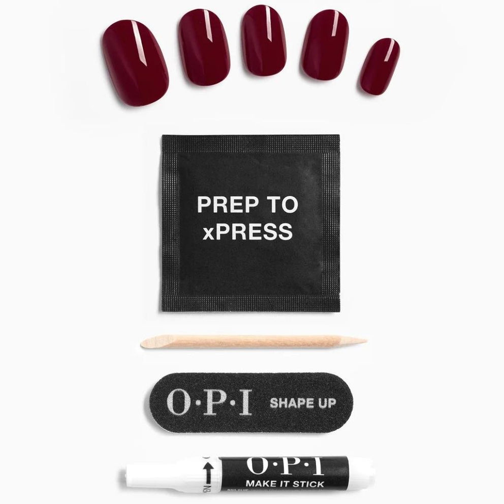 Keep your look clean and fresh with OPI's pressed nails. Create your own personalized look by mixing and matching different colors and patterns. Set includes nail glue, cuticle stick, double nail file and buffer, OPI preparation buffer and 30 nails in different sizes.