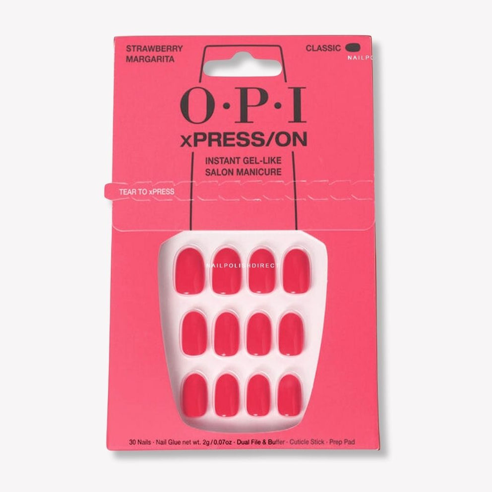Keep your look clean and fresh with OPI's pressed nails. Create your own personalized look by mixing and matching different colors and patterns. Set includes nail glue, cuticle stick, double nail file and buffer, OPI preparation buffer and 30 nails in different sizes.