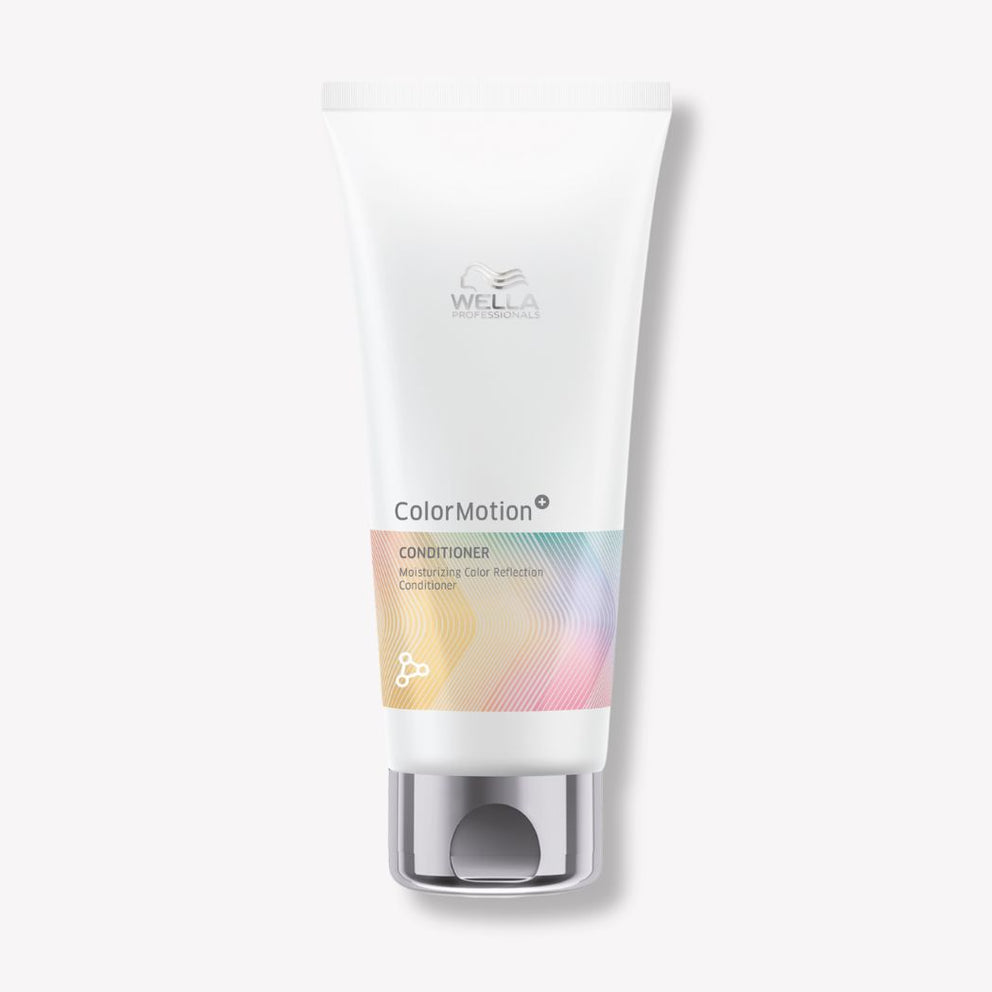 The ColorMotion+ moisturizing conditioner from Wella, specially designed for colored hair, provides daily care that protects and prolongs color vibrancy for up to eight weeks. Its innovative formula targets three major concerns of colored hair: shine, strength and color protection. By restoring the hair surface, it improves light reflection for radiant hair. Enriched with nourishing ingredients, it strengthens the hair structure, making it stronger, healthier and incredibly silky.