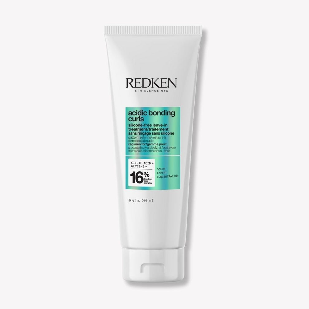 Redken's silicone-free Acidic Bonding Curls leave-in treatment moisturizes, repairs, and protects damaged curls while making styling easier. It offers heat protection up to 450°F, reduces frizz by 85%, improves detangling (up to 12 times easier) and provides up to 96 hours of shine and definition. Enriched with Curl-Bond technology (citric acid, urea, and glycine), it strengthens the internal structure of curls for visibly healthier hair.