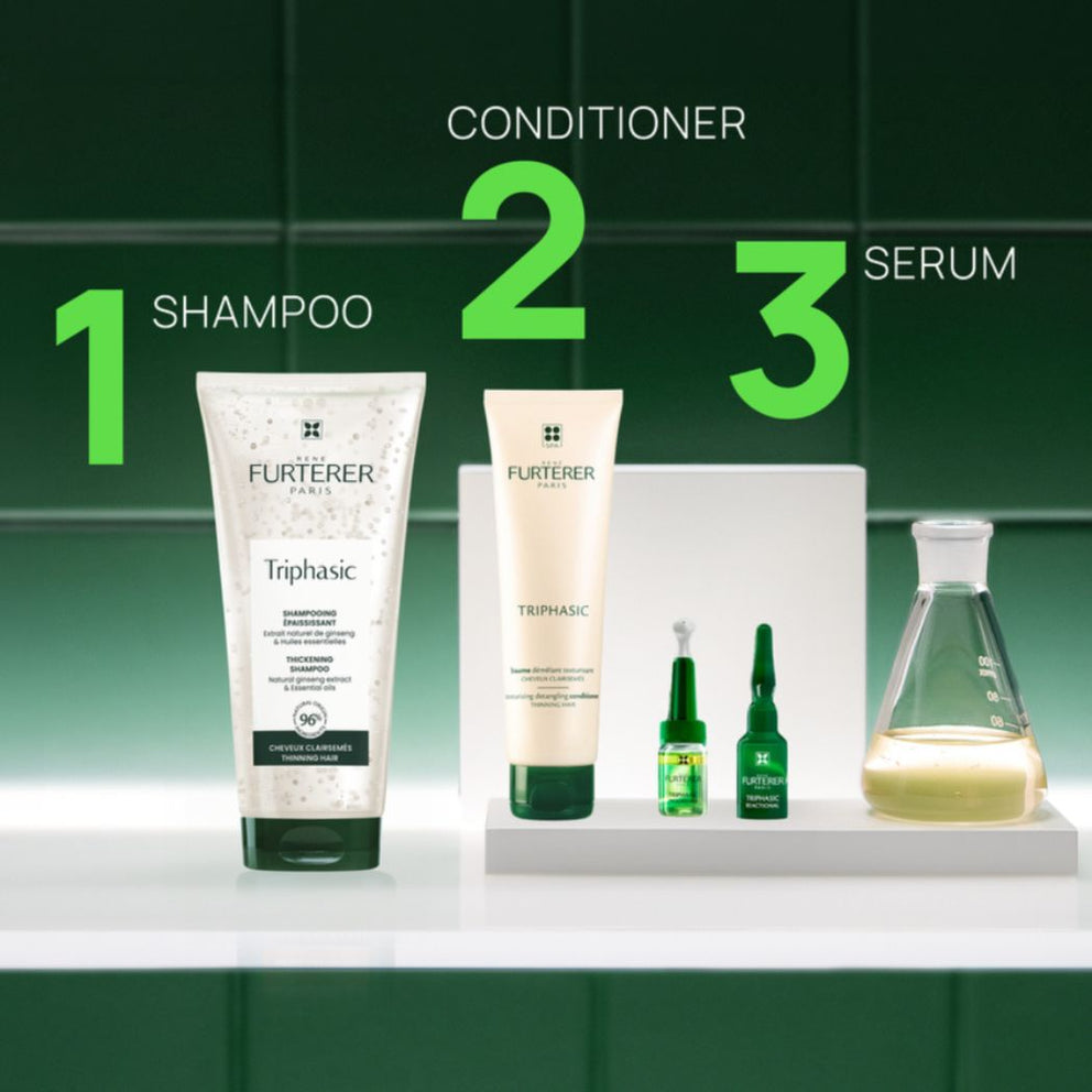 Reactional hair density loss can be linked to a number of factors, such as stress, fatigue, certain deficiencies or post-partum. To remedy this, Triphasic Reactional offers an innovative solution: a treatment composed of 97% ingredients of natural origin, enriched with organic Propolis, a density-boosting active ingredient that stimulates keratin production (x2) and strengthens the hair fiber. Combined with soothing Pfaffia, this no-rinse treatment, with its light texture and delicate fragrance, effectively slows hair loss and restores strength and vitality. Proven efficacy after just 4 applications. Suitable for sensitive scalps and compatible with breastfeeding.