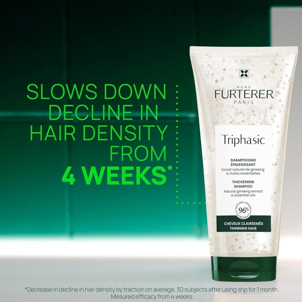 This thickening shampoo, ideal for frequent use in cases of density loss, gently revitalizes the scalp thanks to its sulfated surfactant- and silicone-free cleansing base. Made with 96% natural ingredients, it includes essential oil biospheres, vitamin B5, and natural extracts of organic pfaffia and ginseng to tone the scalp. This formula stimulates stronger, healthier hair growth. Density loss is slowed, and hair appears thicker, stronger and easier to detangle, while remaining soft and shiny. Suitable for men and women.