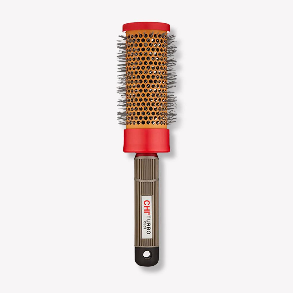 The Turbo CB03 (40mm/ 1 1/2″) ceramic round brush from CHI is the ideal tool for fast drying and perfect smoothing. Designed for all hair types, and particularly effective on medium-length hair, it eliminates frizz and static electricity, guaranteeing optimal smoothness. Thanks to its ceramic shaft, it reflects heat evenly, reducing drying time by up to 40%. Its ergonomic, non-slip handle ensures better control for smooth, tangle-free styling and natural volume. An indispensable ally for elegant, long-lasting styles.