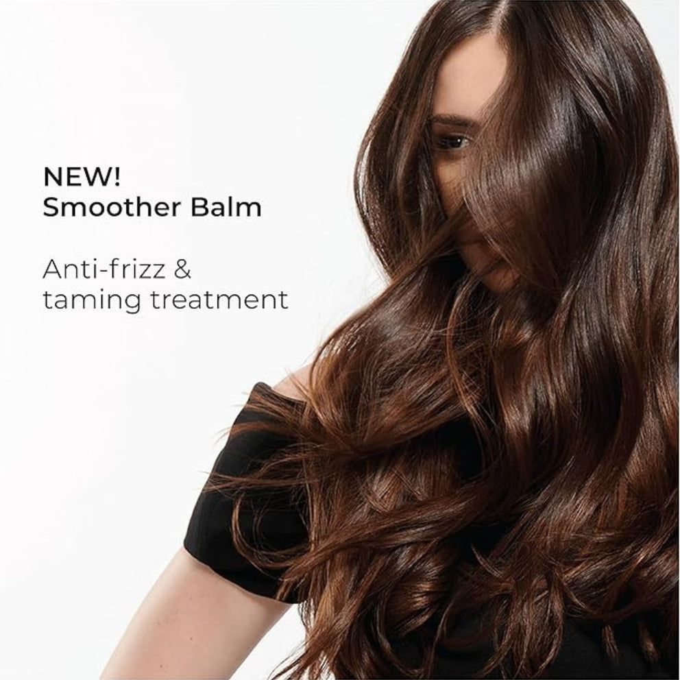 Smoother Balm instantly smoothes hair, controlling curls and waves for a silky, disciplined finish. Its lightweight formula improves control and manageability while reducing frizz and flyaways. Enriched to soften hair fiber and reveal radiant shine, it also protects against humidity and heat while accelerating drying time. 100% vegan, sulfate- and paraben-free, and not tested on animals, it's ideal for smooth, soft, lightweight hair.