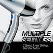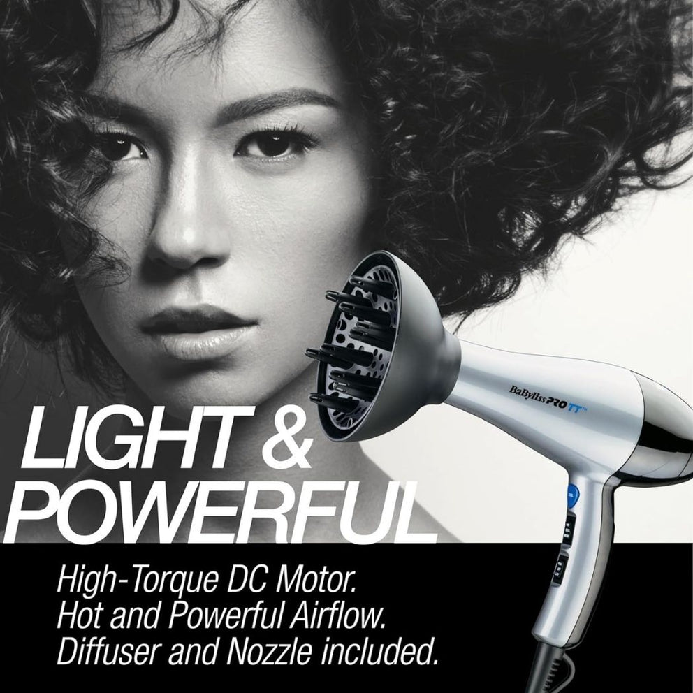 Hot and very powerful airflow 2 speed and 3 heat settings plus a cool shot button Removable filter 1875 watts DC motor Large finger diffuser & snap-on concentrator nozzle
