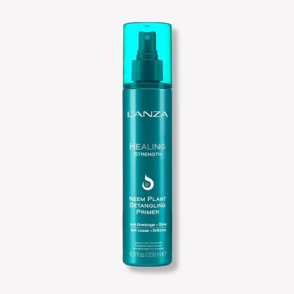 Neem Plant Detangling Primer rinse-free conditioner facilitates detangling and strengthens hair to prevent breakage. In addition to its vegan formula, it offers thermal and UV protection and adds shine.